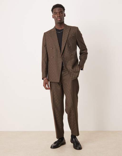 ASOS DESIGN oversized tapered suit pants in brown checkerboard jacquard