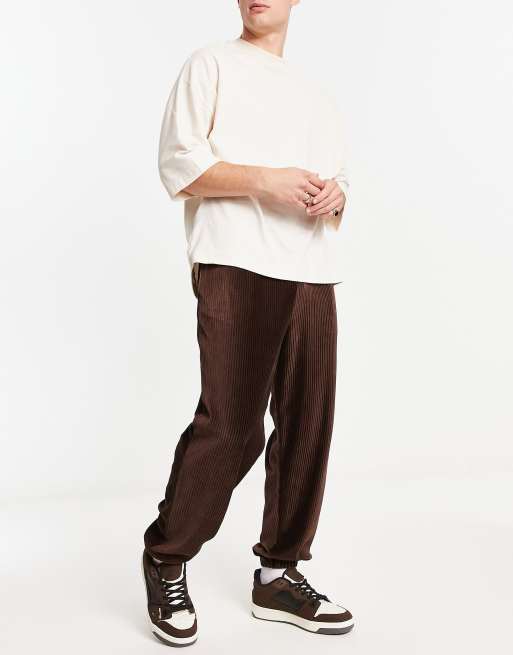 ASOS DESIGN oversized trackies in brown ribbed velour cord