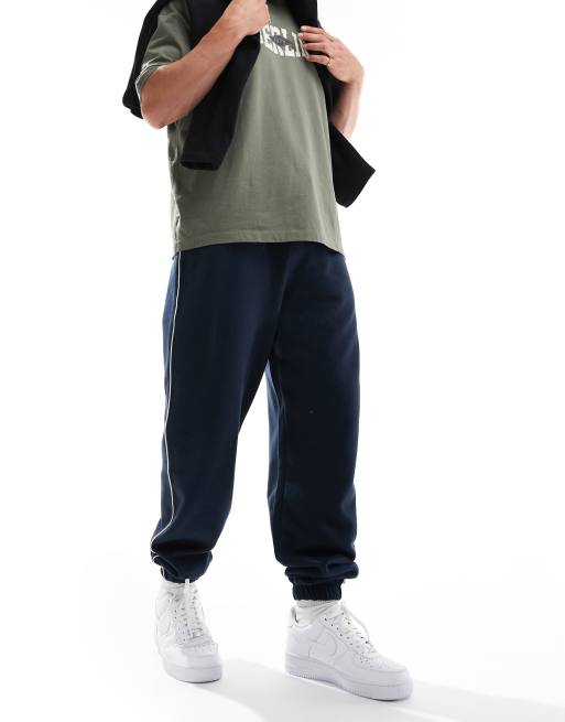 ASOS DESIGN oversized trackies with piping in navy