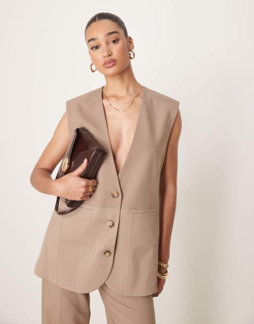 ASOS DESIGN oversized waistcoat in mocha (part of a set)