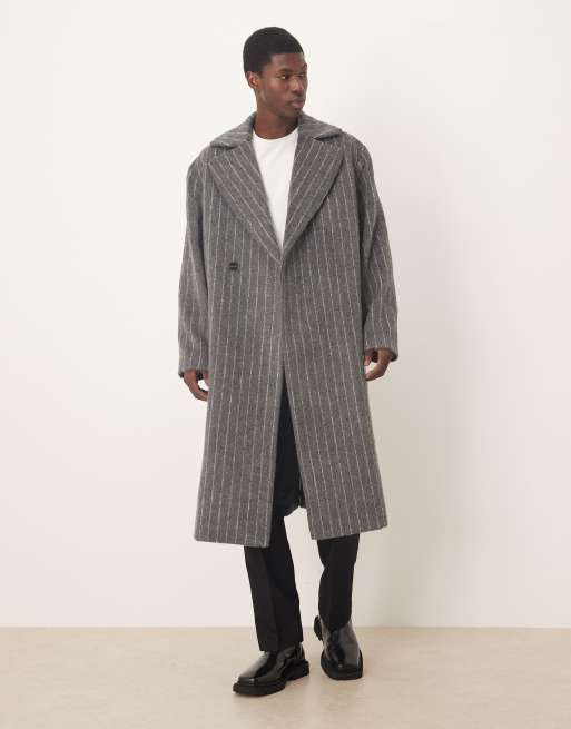 ASOS DESIGN oversized wool blend overcoat in grey pinstripe
