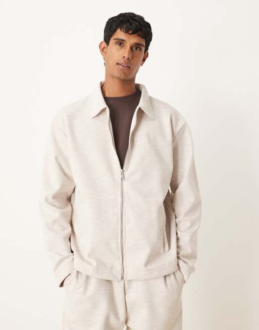 ASOS DESIGN oversized zip through scuba-style fabric jacket in oatmeal (part of a set)