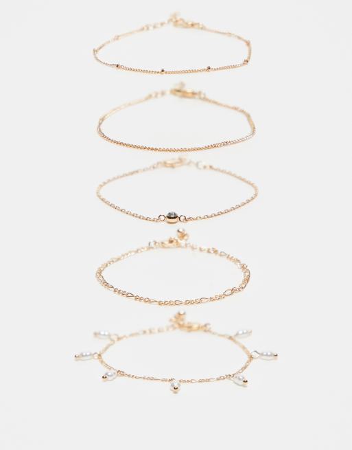 ASOS DESIGN pack of 5 chain bracelets in gold tone