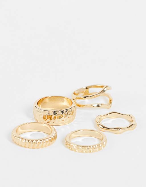 ASOS DESIGN pack of 5 rings with textured designs in gold tone