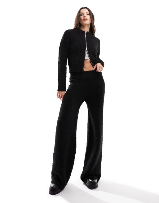 ASOS DESIGN pants in fluffy yarn in black (part of a set)