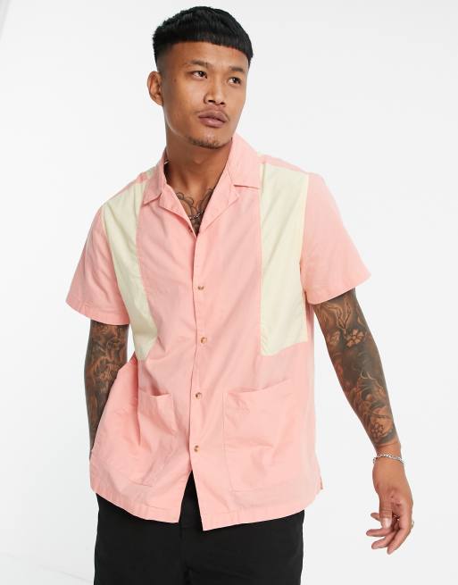 ASOS DESIGN patchwork bowling shirt with revere collar in pink