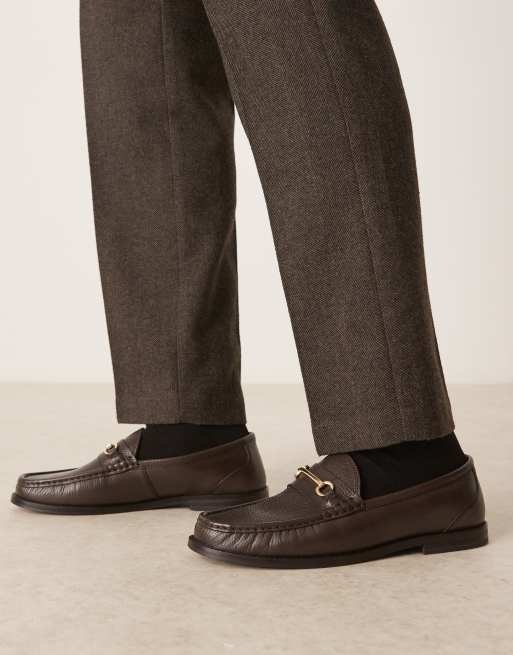 ASOS DESIGN penny loafers in brown leather with snaffle