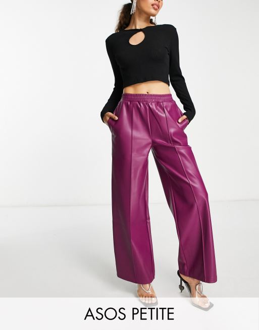 ASOS DESIGN Petite straight faux leather trackie pants in plum
