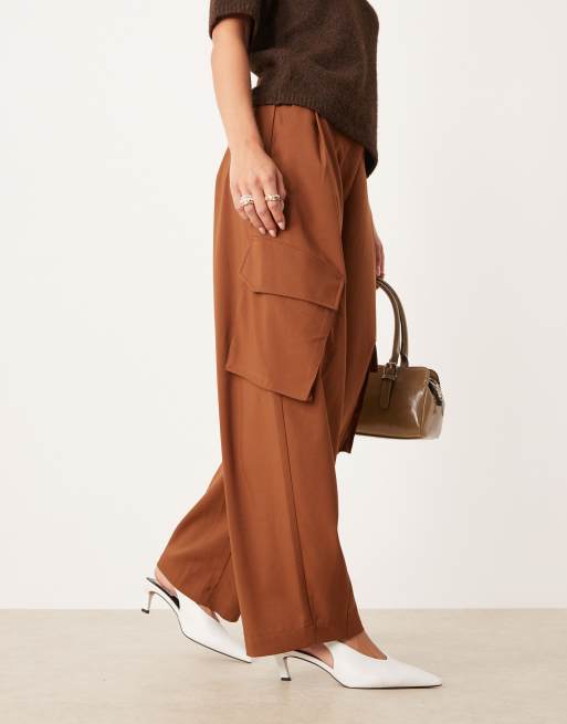 ASOS DESIGN Petite tailored utility barrel pants in tobacco brown