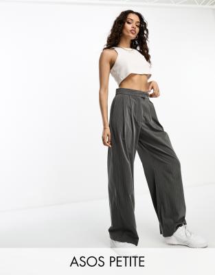ASOS DESIGN Petite wide leg pleated striped pants in grey