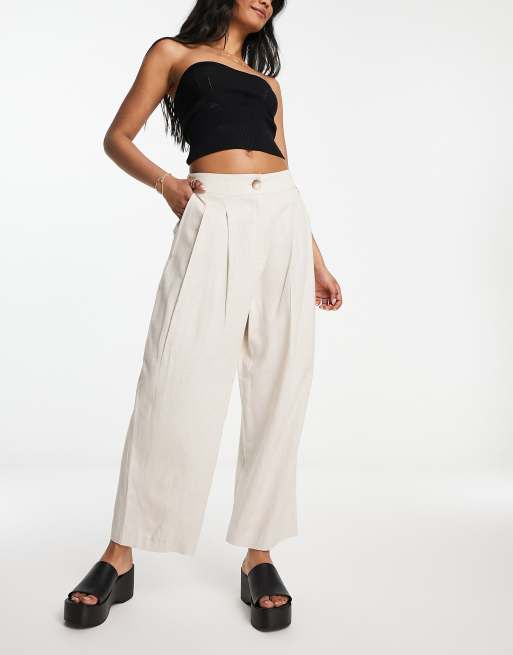 ASOS DESIGN pleated tapered pants with linen in stone