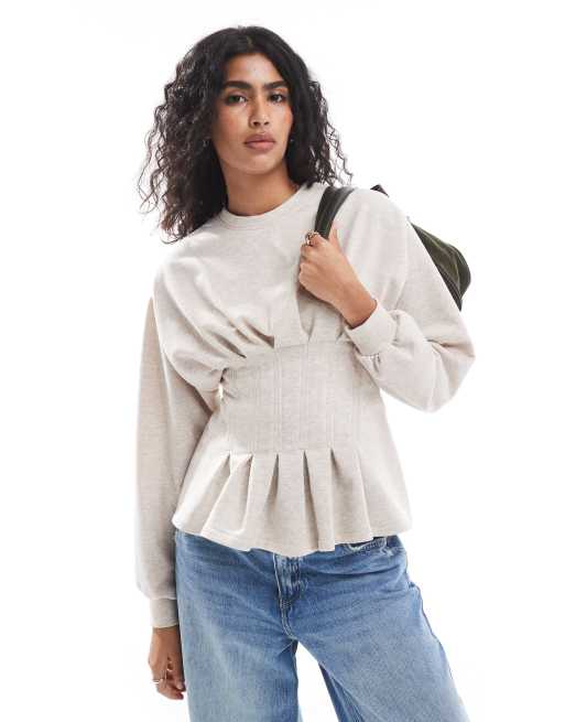 ASOS DESIGN pleated waist sweat in oatmeal marl