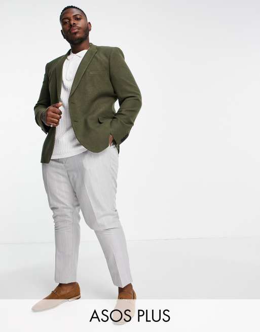 ASOS DESIGN Plus skinny wool mix suit jacket in khaki twill