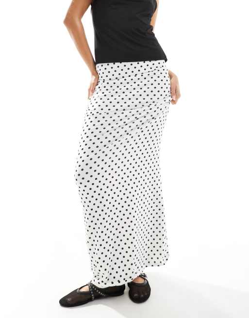 ASOS DESIGN polka dot mesh maxi skirt with black picot in white