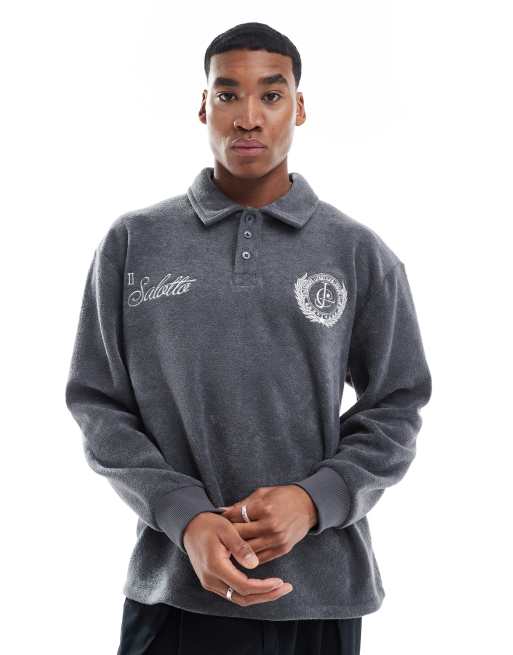 ASOS DESIGN polo sweatshirt with embroidery in grey