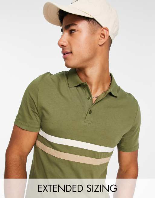 ASOS DESIGN polo t-shirt in green with contrast panels