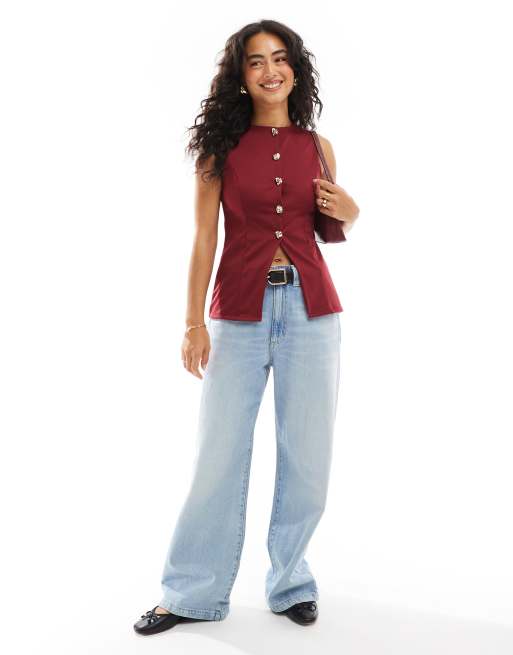 ASOS DESIGN ponte waistcoat in burgundy