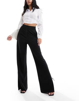 ASOS DESIGN ponte wide leg pants with vent split in black