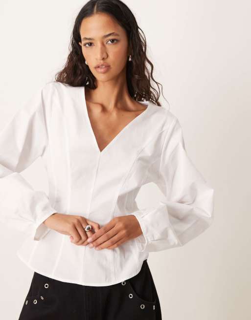 ASOS DESIGN poplin cocoon sleeve fitted shirt in white