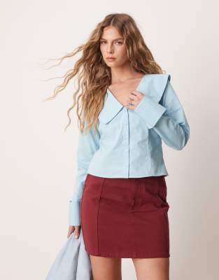 ASOS DESIGN poplin oversized collar fitted shirt in blue