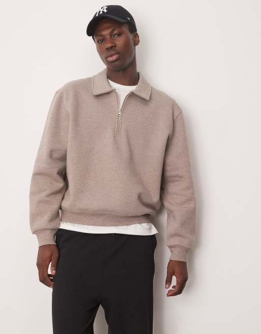 ASOS DESIGN premium boxy oversized rugby polo sweatshirt in brown marl