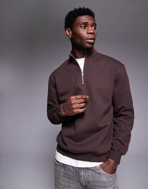 ASOS DESIGN premium heavyweight oversized quarter zip sweatshirt 400gsm in dark brown