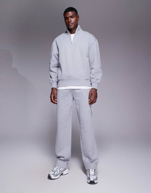ASOS DESIGN premium heavyweight straight leg trackies in 400gsm in grey marl