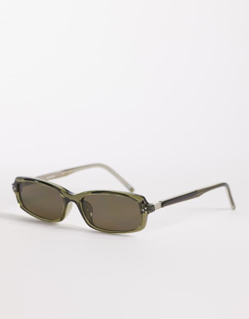 ASOS DESIGN premium slim rectangle sunglasses with green frame and lens