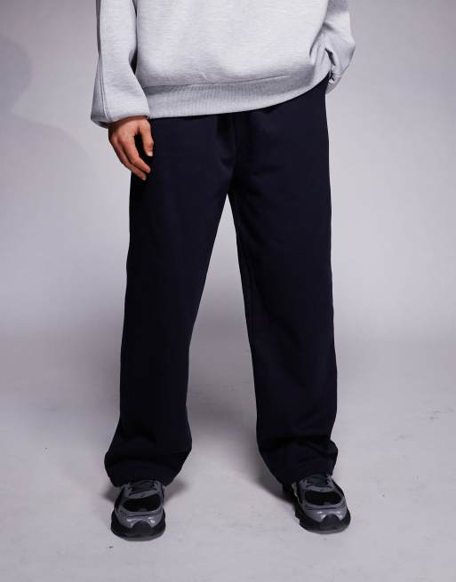 ASOS DESIGN premium wide leg trackies in 400gsm in navy