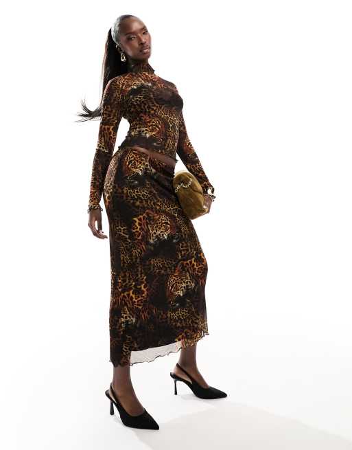 ASOS DESIGN printed leopard mesh midi skirt (part of a set)