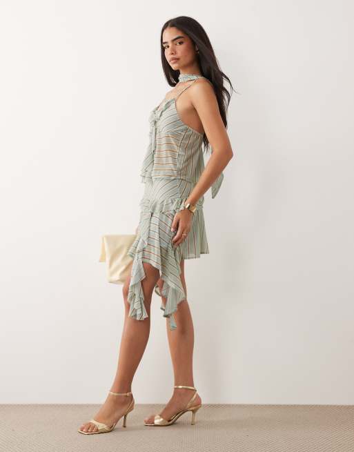 ASOS DESIGN printed stretch chiffon ruffle set in stripe print