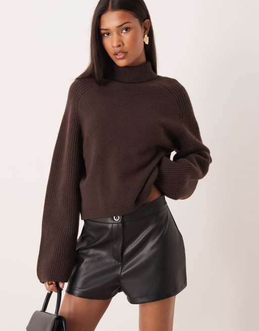 ASOS DESIGN PU mid rise shorts in black