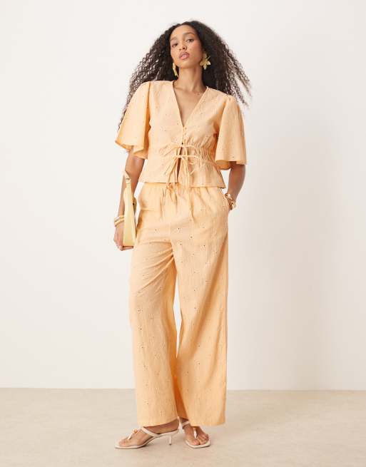 ASOS DESIGN pull on floral embroidery pants in apricot (part of a set)