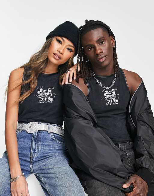 ASOS DESIGN Punk Mickey unisex slim fit singlet with Disney print in black