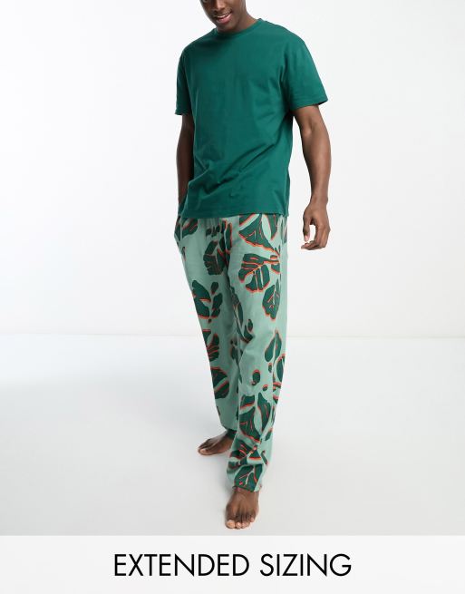 ASOS DESIGN pyjama lounge set with t-shirt and pants in green with leaf print