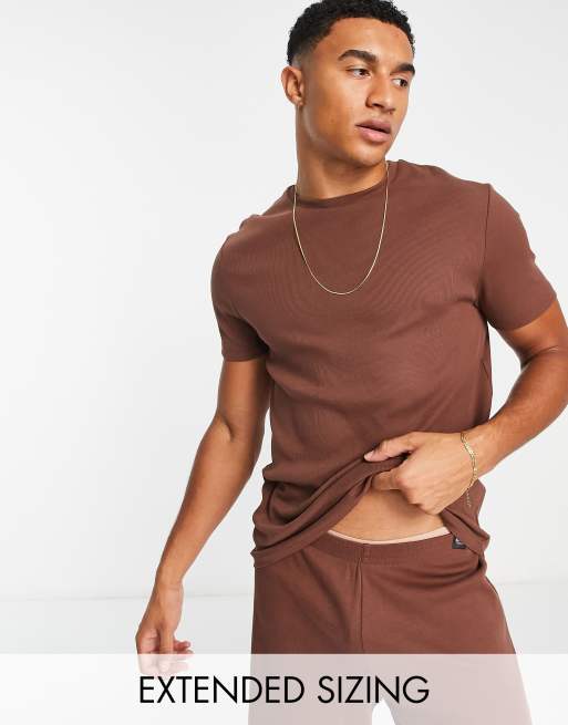 ASOS DESIGN pyjama set with t-shirt and shorts in brown rib