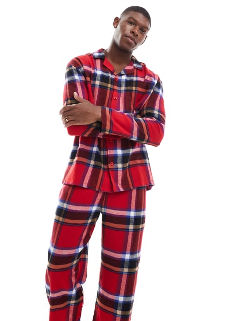 ASOS DESIGN pyjama set with tartan shirt and bottoms in red