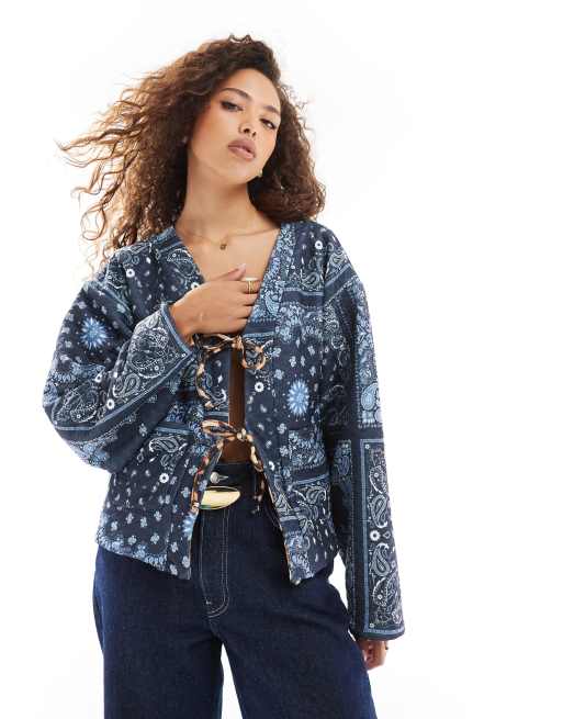 ASOS DESIGN quilted jacket in bandana and leopard print