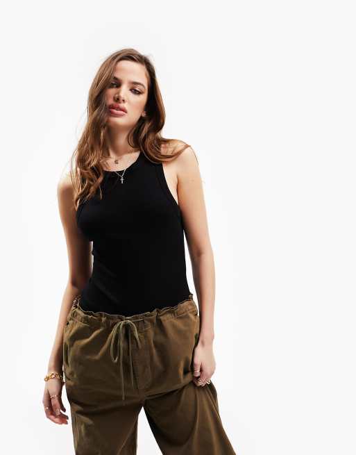 ASOS DESIGN racer neck bodysuit in black