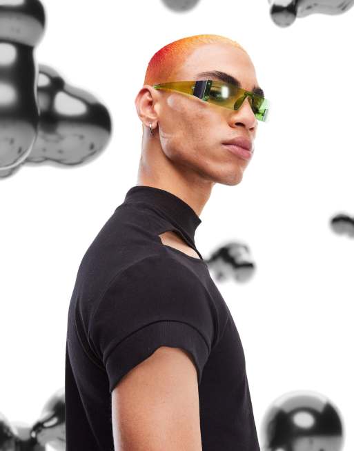 ASOS DESIGN rave wrap sunglasses in neon green