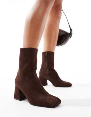 ASOS DESIGN Record smart mid boots in chocolate brown