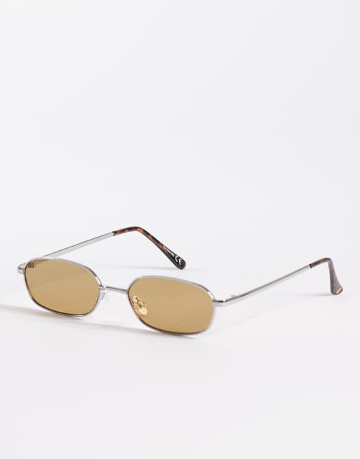 ASOS DESIGN rectangle sunglasses in silver metal with olive lens