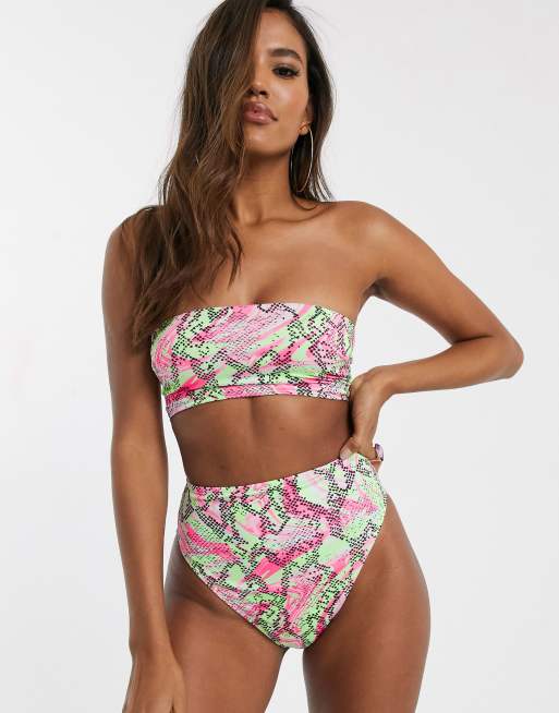 ASOS DESIGN recycled mix and match clean bandeau bikini top in marble snake print