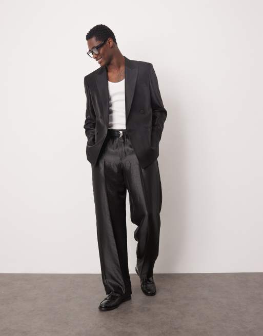 ASOS DESIGN regular double breasted suit in black metallic satin