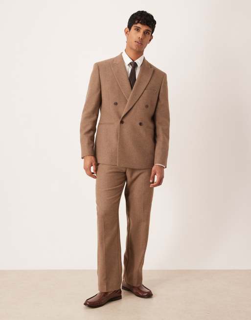 ASOS DESIGN regular double-breasted suit with wool in brown