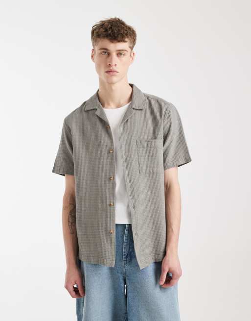 ASOS DESIGN regular fit waffle textured shirt in khaki