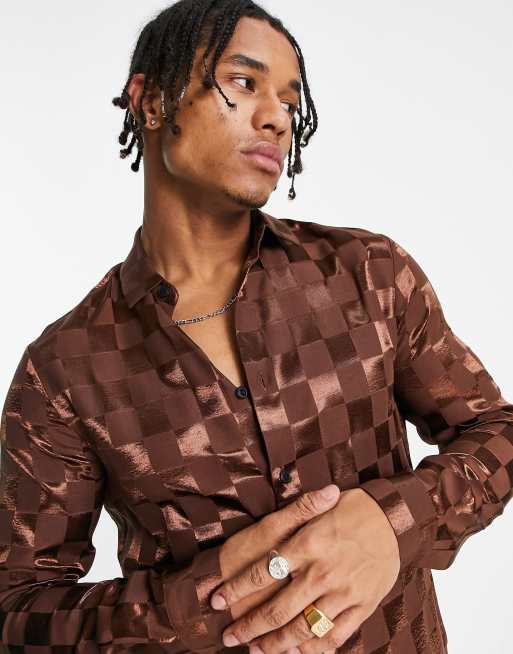 ASOS DESIGN regular shirt in checkerboard satin jacquard