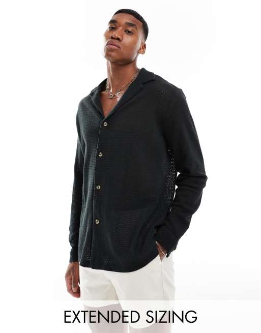 ASOS DESIGN relaxed deep revere collar textured shirt in black