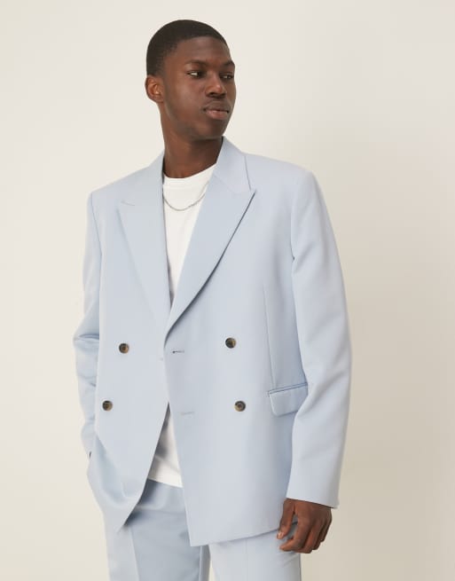 ASOS DESIGN relaxed double breasted suit jacket in blue