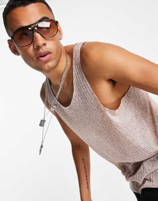 ASOS DESIGN relaxed fit lightweight rib singlet in light brown